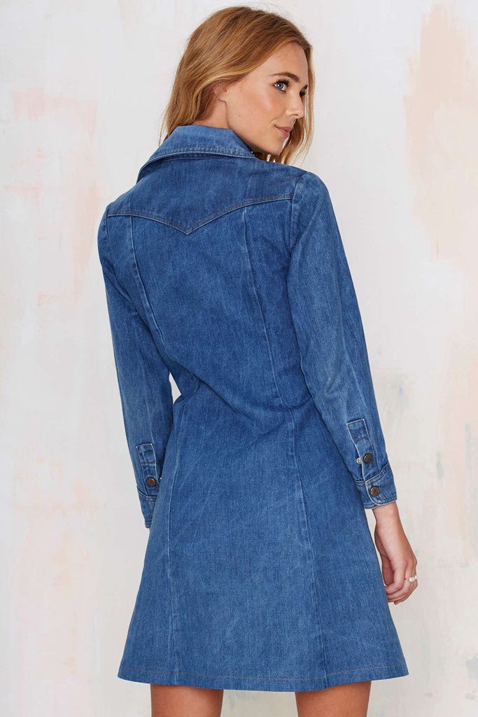 Description: asymmetric pocket denim dress, blue denim mini dress, casual denim dress spring, cotton polyester denim mini, everyday mini denim dress, long sleeve denim mini dress, mini denim dress women, retro buttoned mini denim dress, retro metal button dress, wide leg denim dress alternative