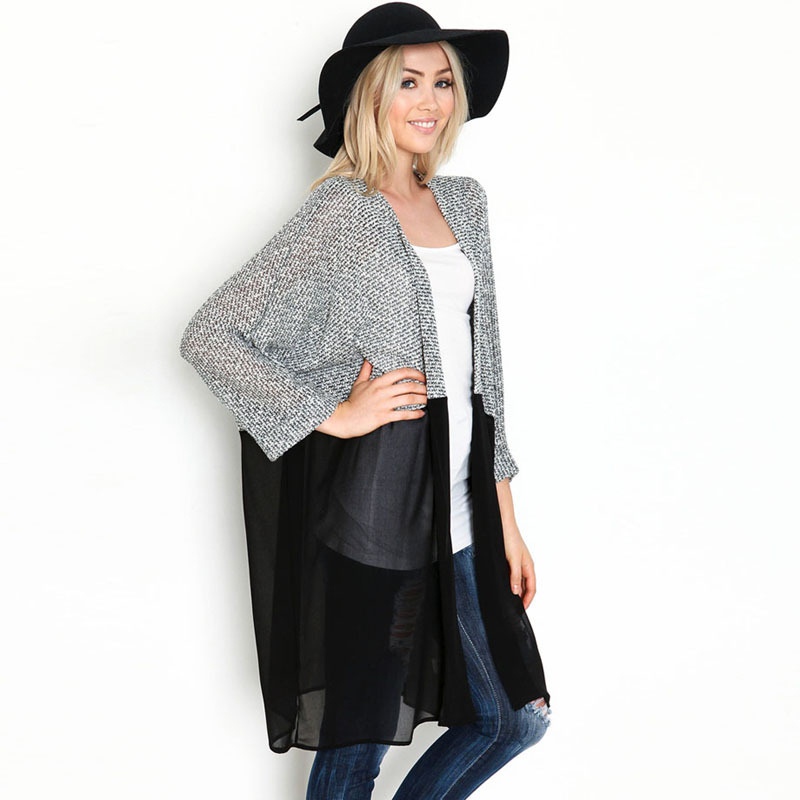 Description: bohemian cardigan, chiffon cardigan, flowy cardigan, gray cardigan, lightweight cardigan, long sleeve cardigan, oversized cardigan, romantic cardigan, spring cardigan, women's chiffon cardigan