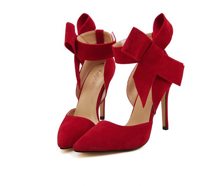 Description: black suede heels, blue suede heels, bow stiletto, green stiletto, high heel bow shoes, pink stiletto, red bow heels, romantic high heels, suede stiletto, women's bow heels