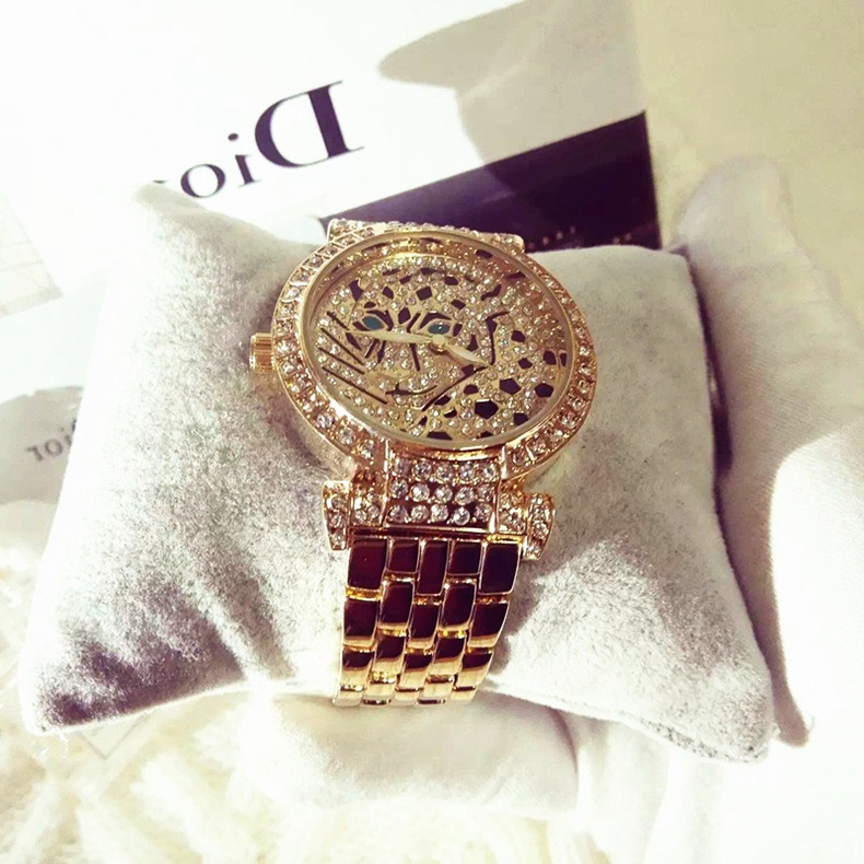 Description: boho leopard accessory, elegant gold timepiece, gold leopard fashion watch, gold rhinestone leopard watch, gold rhinestone watch, leopard strap watch, luxury women's watch, rhinestone dial watch, statement leopard strap watch, trendy womens wristwatch