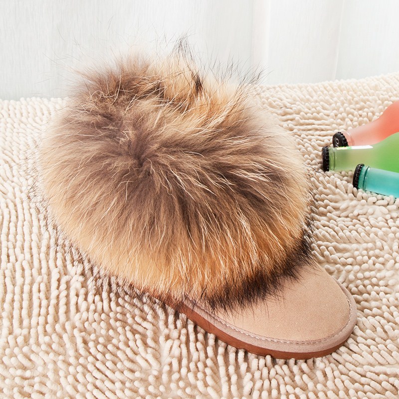 Description: ankle winter boots, beige snow boots, black fur boots, colorful winter boots, fur lined ankle boots, plush trim snow boots, real fox fur trim, suede leather footwear, suede snow boots, women's luxury boots