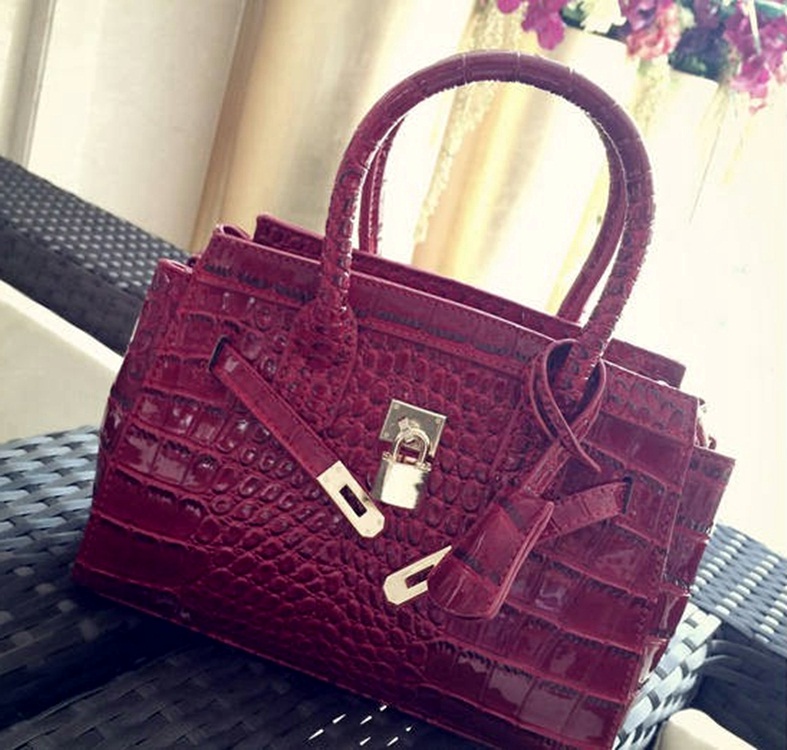 Description: black patent leather bag, burgundy patent purse, crocodile pattern patent bag, embossed texture handbag, faux patent crocodile bag, glossy crocodile leather bag, purple crocodile bag, red glossy handbag, statement mini bag, versatile patent shoulder bag