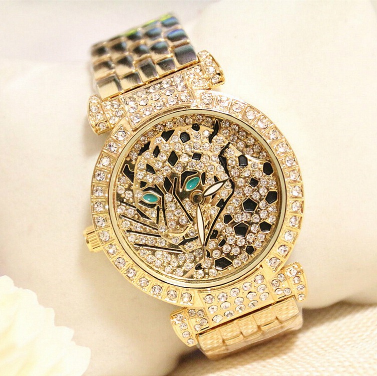 Description: boho leopard accessory, elegant gold timepiece, gold leopard fashion watch, gold rhinestone leopard watch, gold rhinestone watch, leopard strap watch, luxury women's watch, rhinestone dial watch, statement leopard strap watch, trendy womens wristwatch