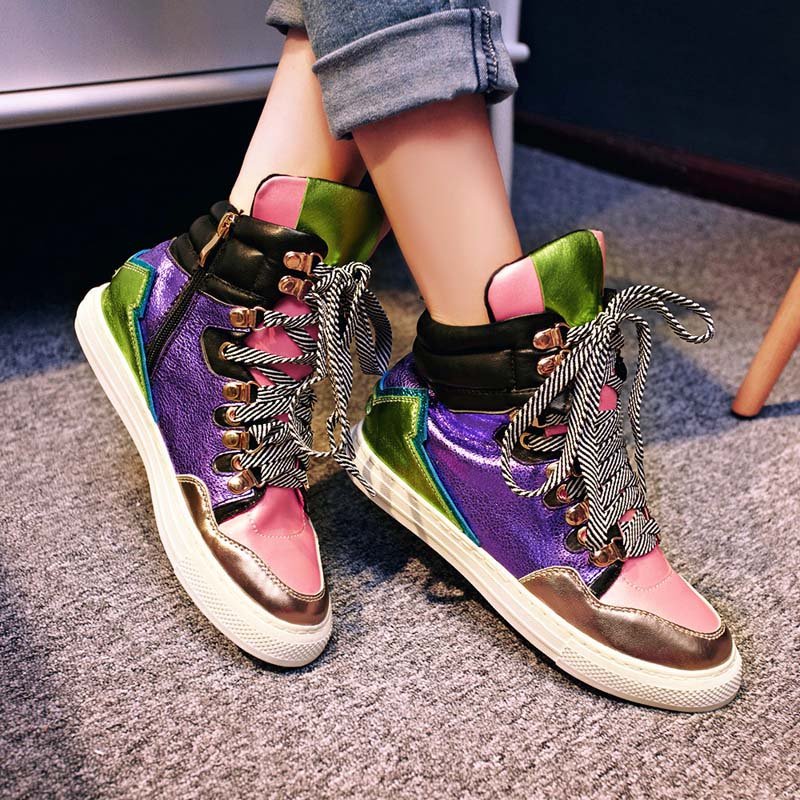 Women Genuine Leather Women Hidden Increasing Height Heel Colored Sneaker